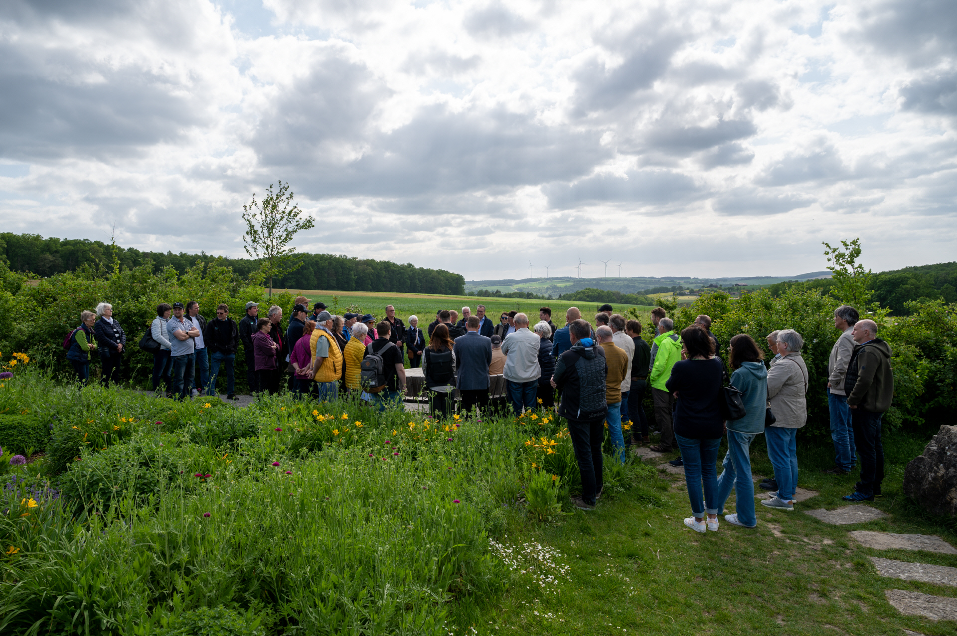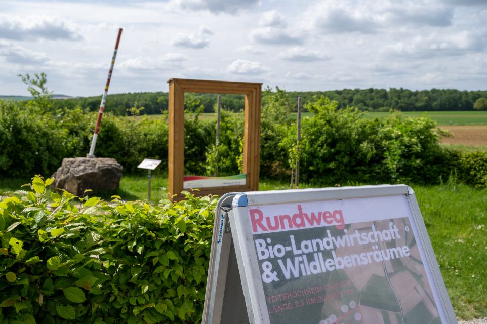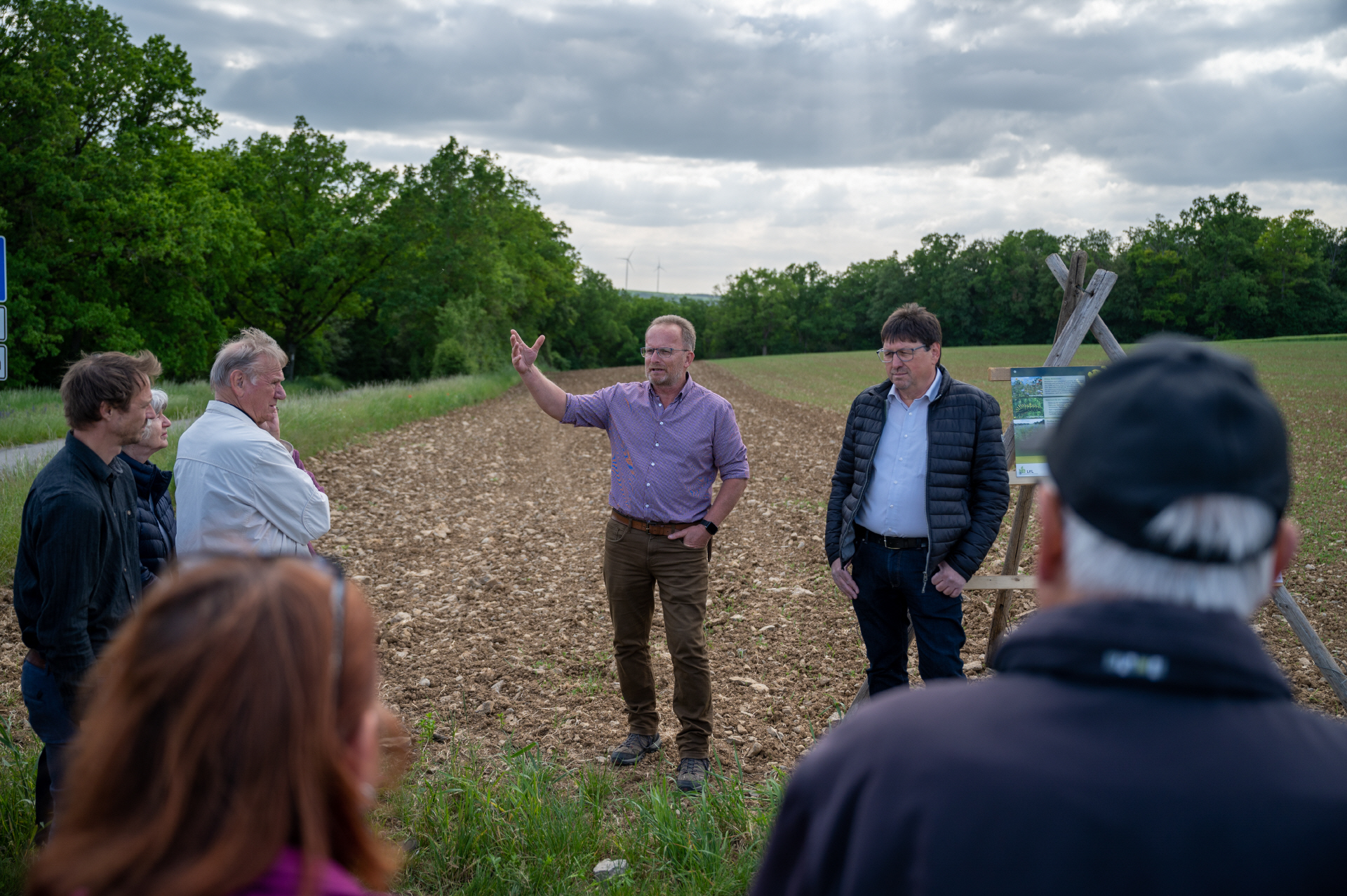 Pionier-Rundweges „Bio-Landwirtschaft und Wildlebensräume“ des Gadheimer Biolandwirts Johannes Römert am EU-Mittelpunkt eröffnet