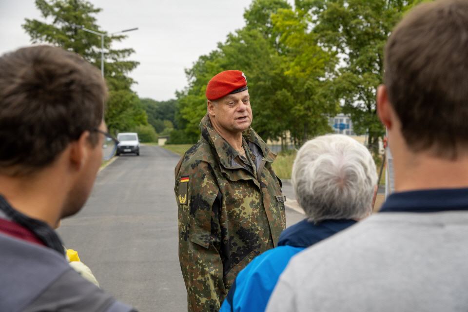 Der stellvertretende Divisionskommandeur Brigadegeneral Michael Podzus und Kasernenkommandant Oberstleutnant Thomas Lischitzki führten die rund 40 Gäste zunächst durch die Kaserne: