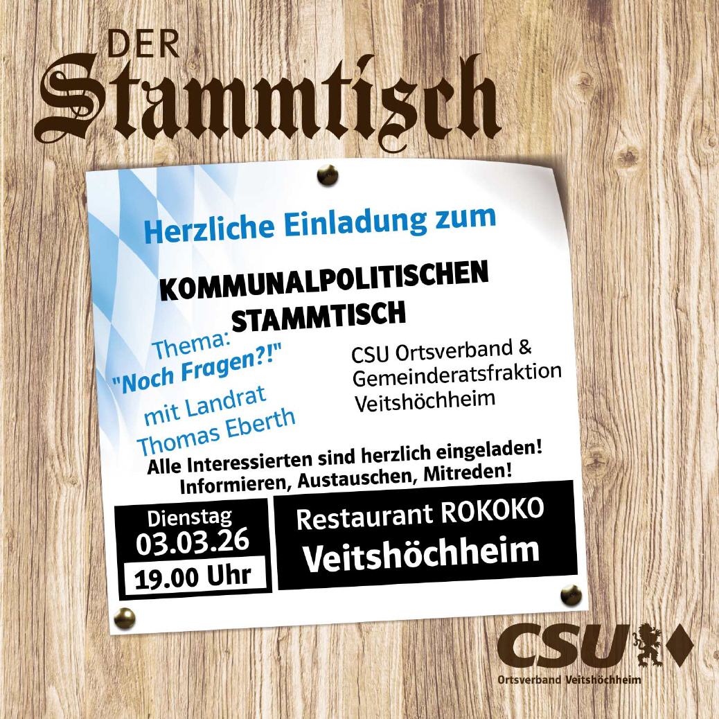 Gemeinsam mit Kandidatinnen und Kandidaten der CSU für die Kreistagswahl kommt Landrat Thomas Eberth im Rahmen der Landkreistour auch in Veitshöchheim vorbei.